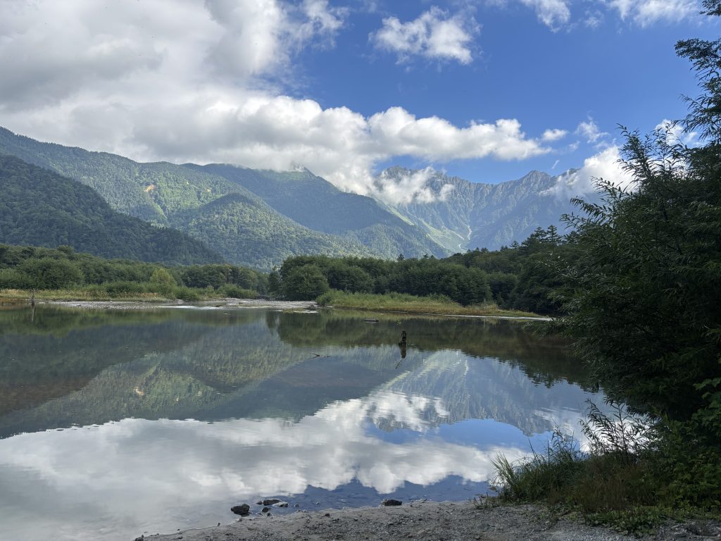 水面に移る山々も、肉眼で見る山々も、力強い山脈が印象的でした。
