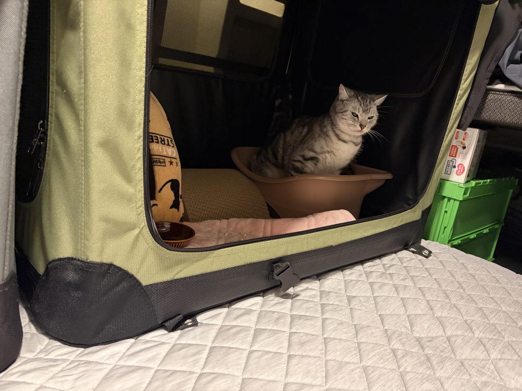 かく言う私も宮城まで一気に帰らず、今夜もBADENで猫ちゃん達と車中泊です。
