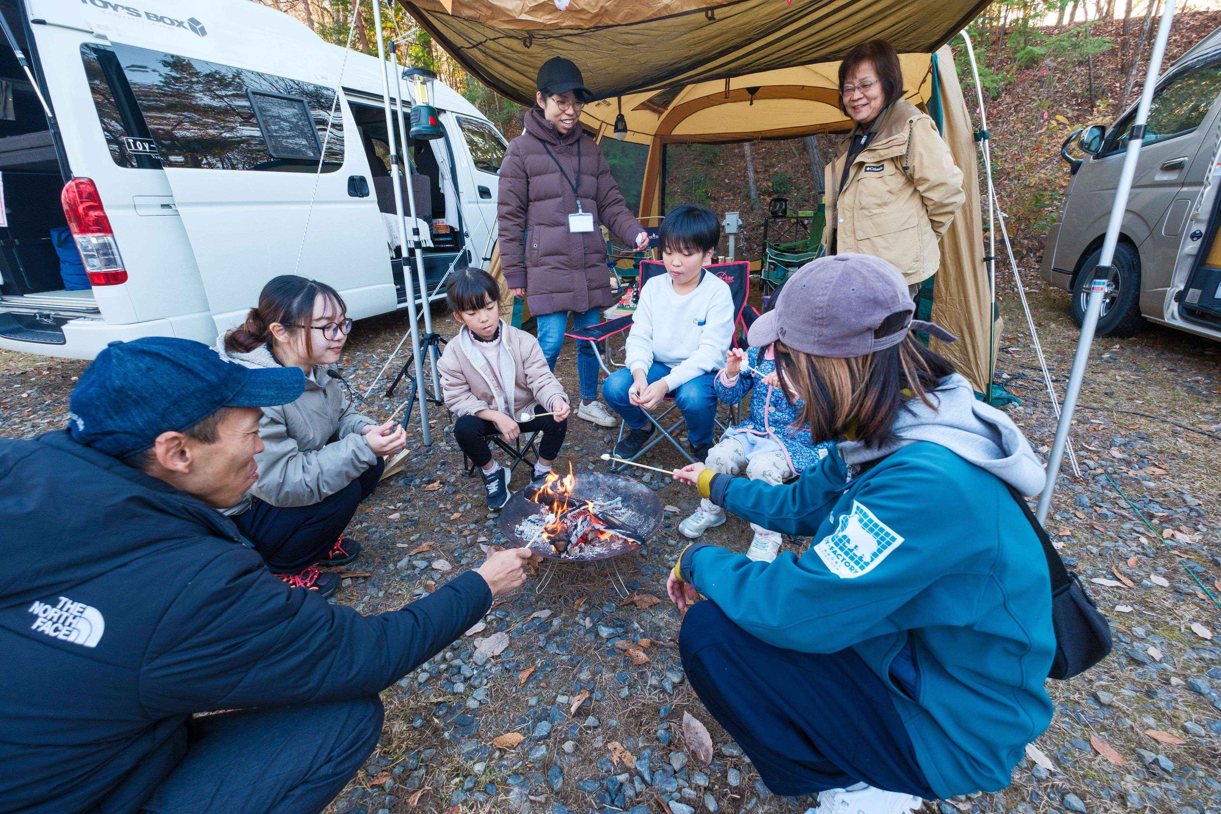 ▶ワークショップに、温かいフードの提供、そっと誰かがくべる焚火、まさにここでしかできない【トイ森キャンピングカーショー】