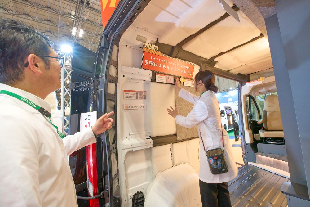 施工前後のキャンピングカーを比較展示しながら、