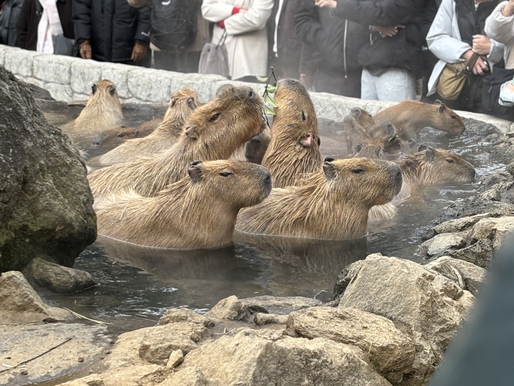 露天風呂に浸かるカピバラさんで有名な動物園。