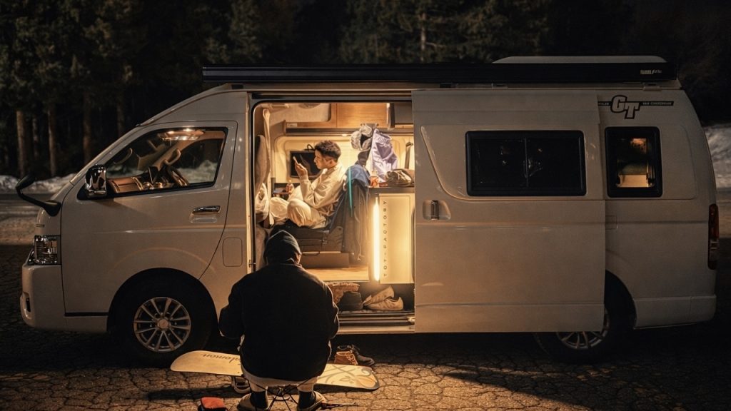 思いっきり滑ったあとは、そのままキャンピングカーへ。