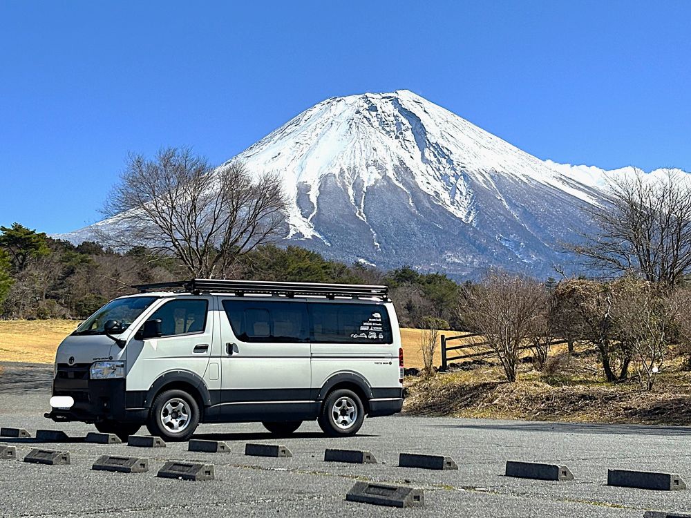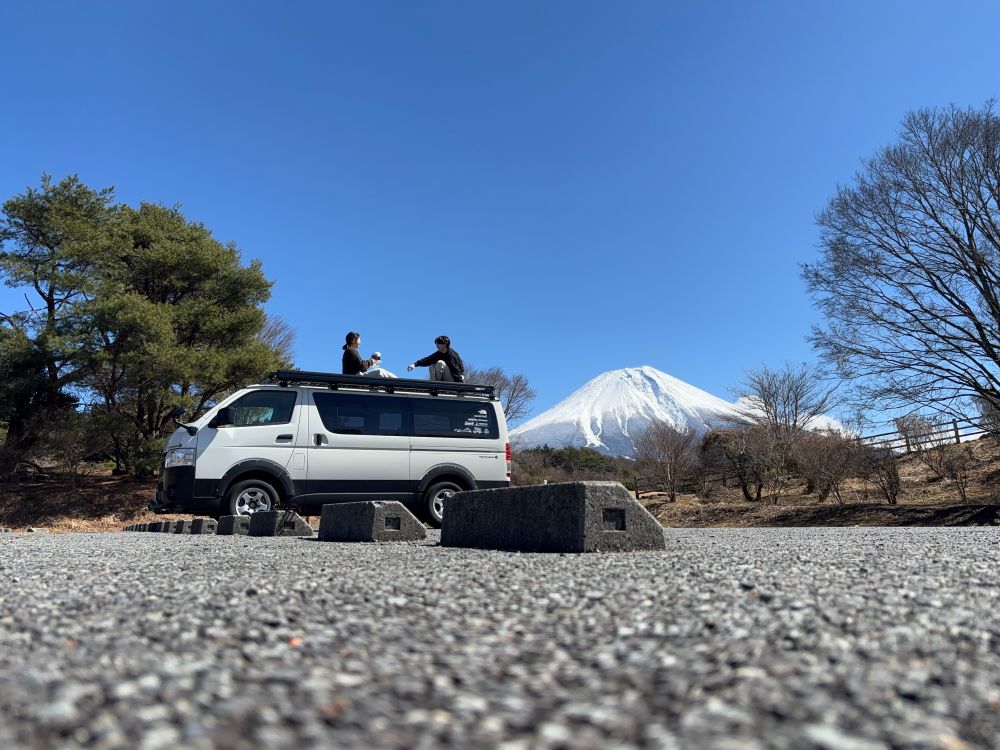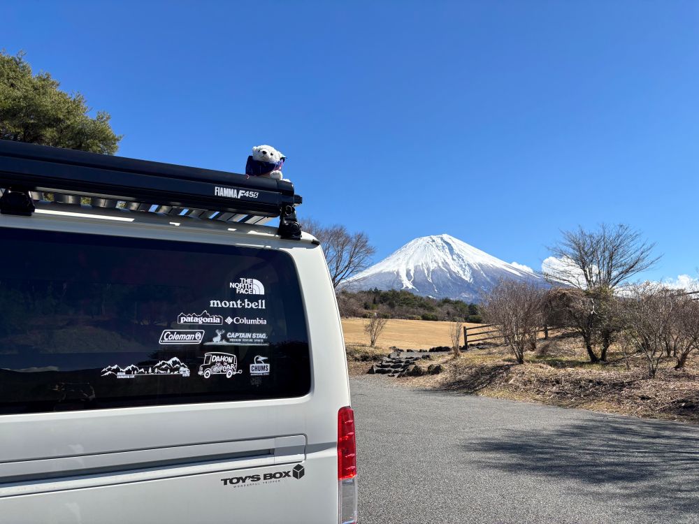 富士山と風丸(車の名前です)が美しく並ぶアングルを探し出し、何枚もパシャパシャ📸