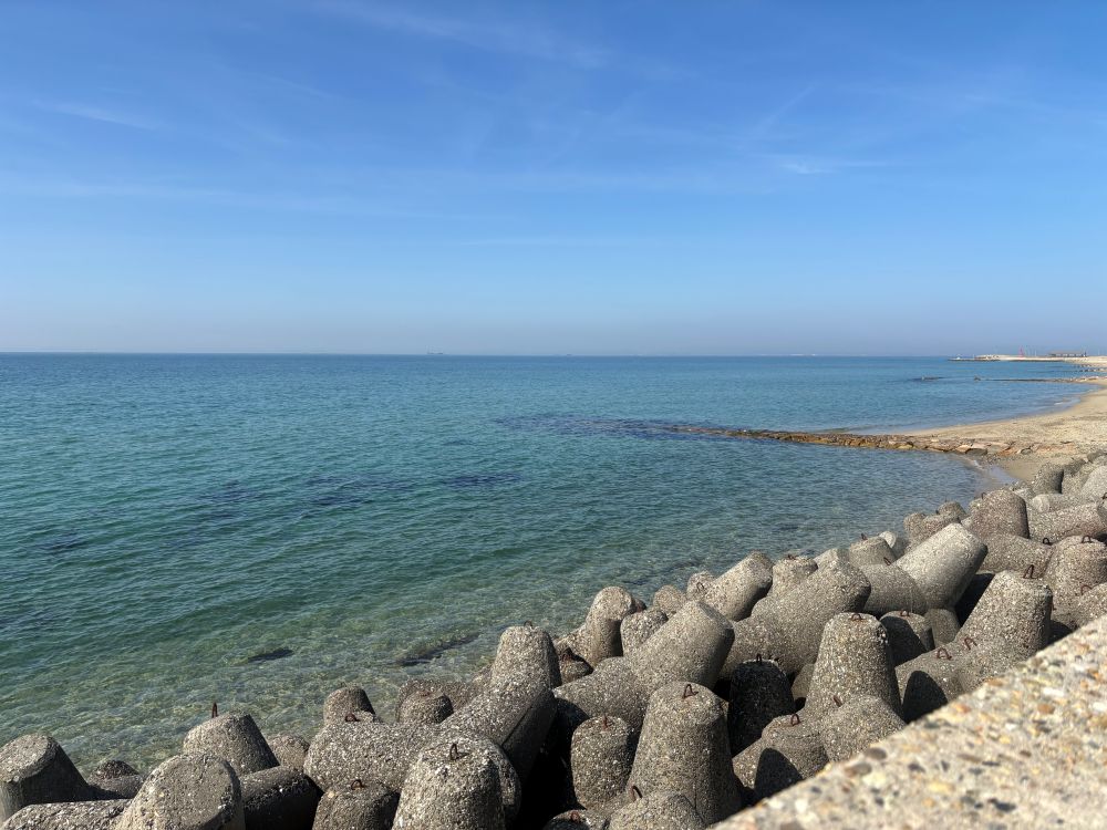 食休めがてら海辺も散歩👣コントラストが美しいお色です。