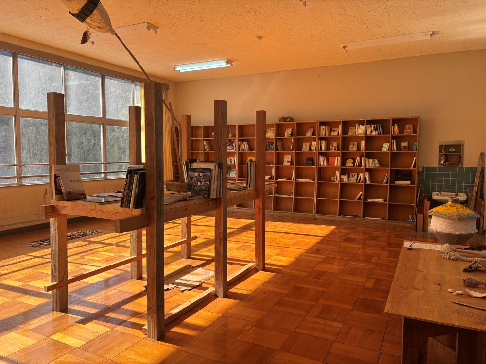 「旧江井小学校」を改修した、小さな複合施設へ。 サスティナブルをテーマにギャラリーやショップ、工房やカフェなどが入っていました。