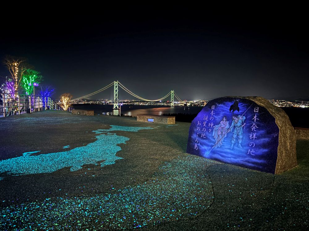 朝とは一変して夜景がきれいな明石大橋。日本列島で最初に創造された島と言われる歴史も感じられる夜でした🌙