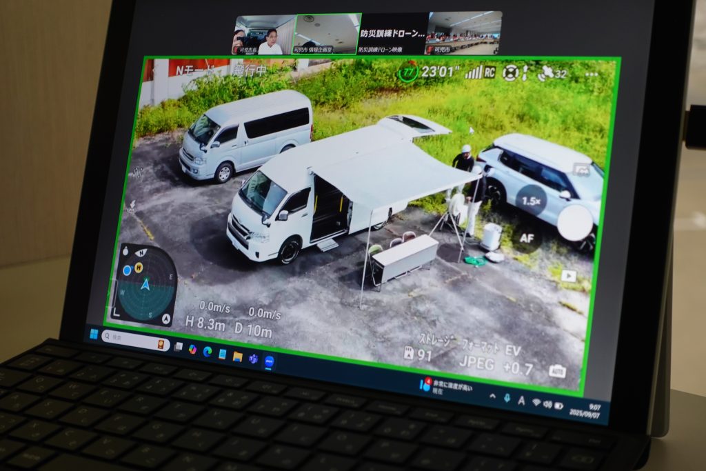 - ドローンによる空撮中継を行い、遠隔指揮に必要な情報をリアルタイムに共有