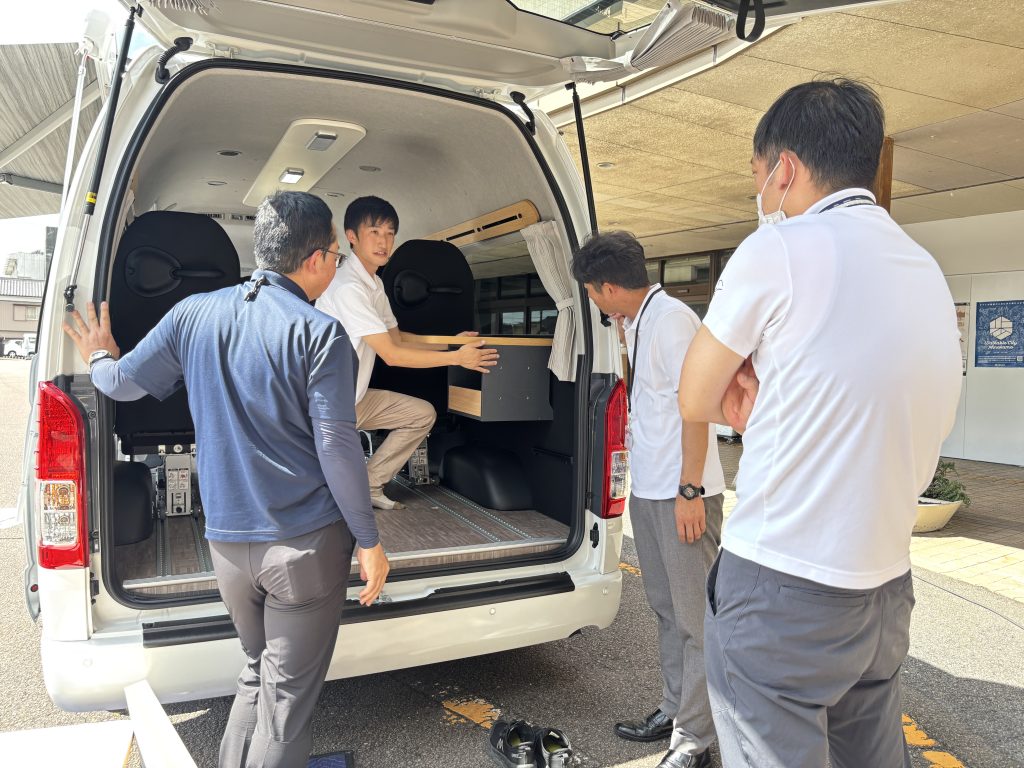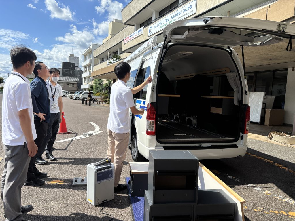 トヨタ/ハイエースや、軽自動車をベースに、取り外し可能な脱着式シートや家具を車内に設置し、レイアウトを用途に応じて組み替え多目的に活用できる「備えない防災」を形にした車両です。