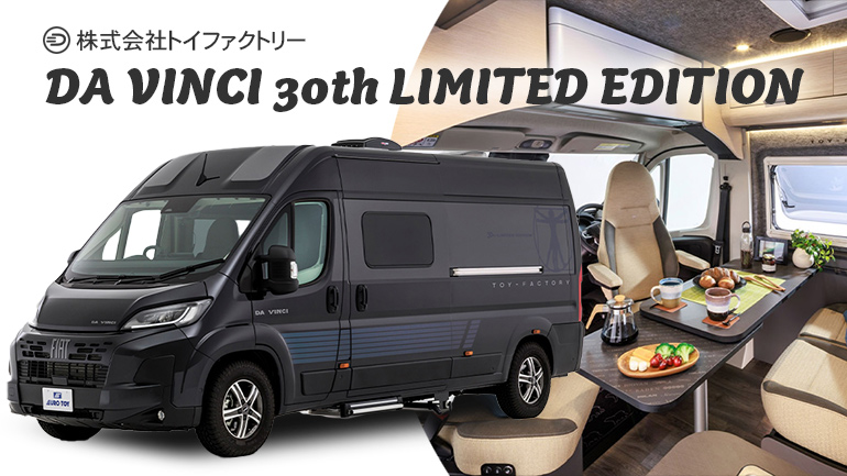 近年、新たなフラッグシップとして同社が積極的に展開しているのがイタリア車・FIAT DUCATO(フィアット デュカト)をベースにしたキャンピングカーです。なかでも「DA VINCI(ダヴィンチ)」は、不世出の芸術家・発明家だったレオナルド・ダ・ヴィンチにちなみ、先進性や革新性を特徴とするバンコンシリーズ。このたび、「DA VINCI」にも特別仕様アニバーサリーモデル「30th LIMITED EDITION」が発表されました。