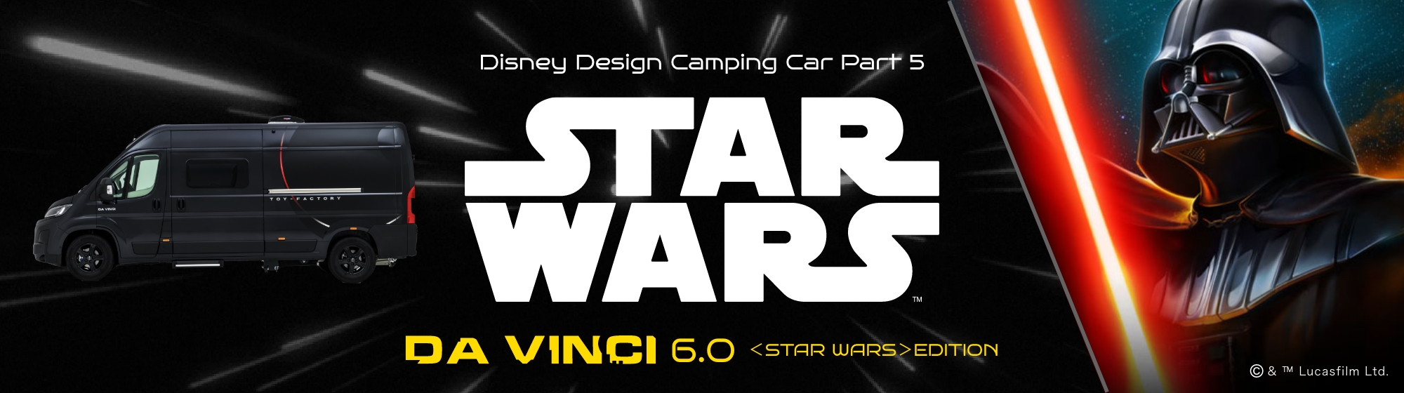 映画『スター・ウォーズ』シリーズ公式ライセンスのキャンピングカー「DA VINCI 6.0〈STAR WARS〉EDITION」の【限定生産5台】での発売発表 を記念し、輸入車キャンピングカー専門店「EURO-TOY相模原」にて、特別イベント「EURO-TOY STAR NIGHT」を開催いたします。