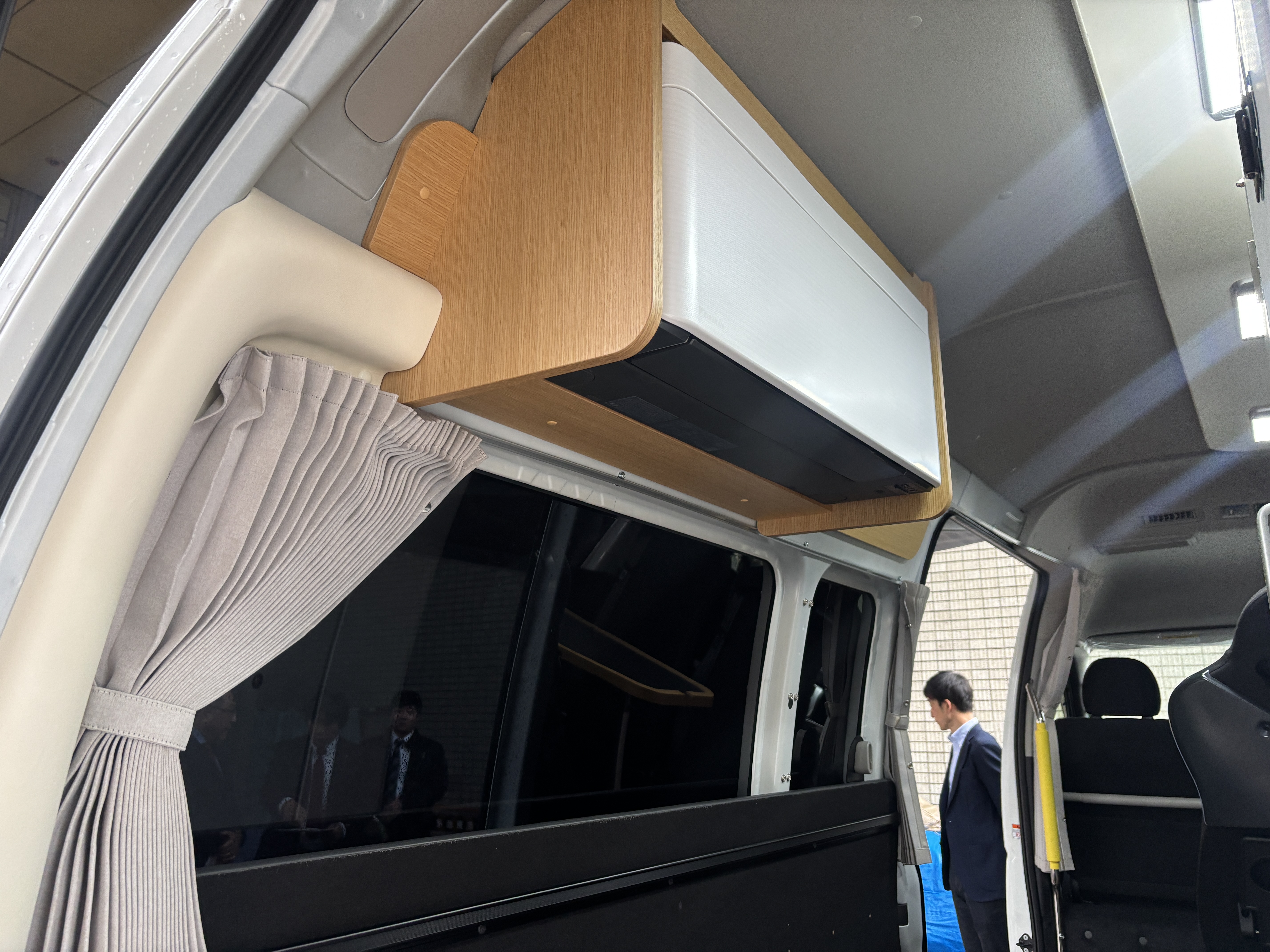 また、エンジン停止中でも電力を使用できるサブバッテリーを搭載し、家庭用エアコンも備えているため、猛暑時においても快適な環境を確保できます。