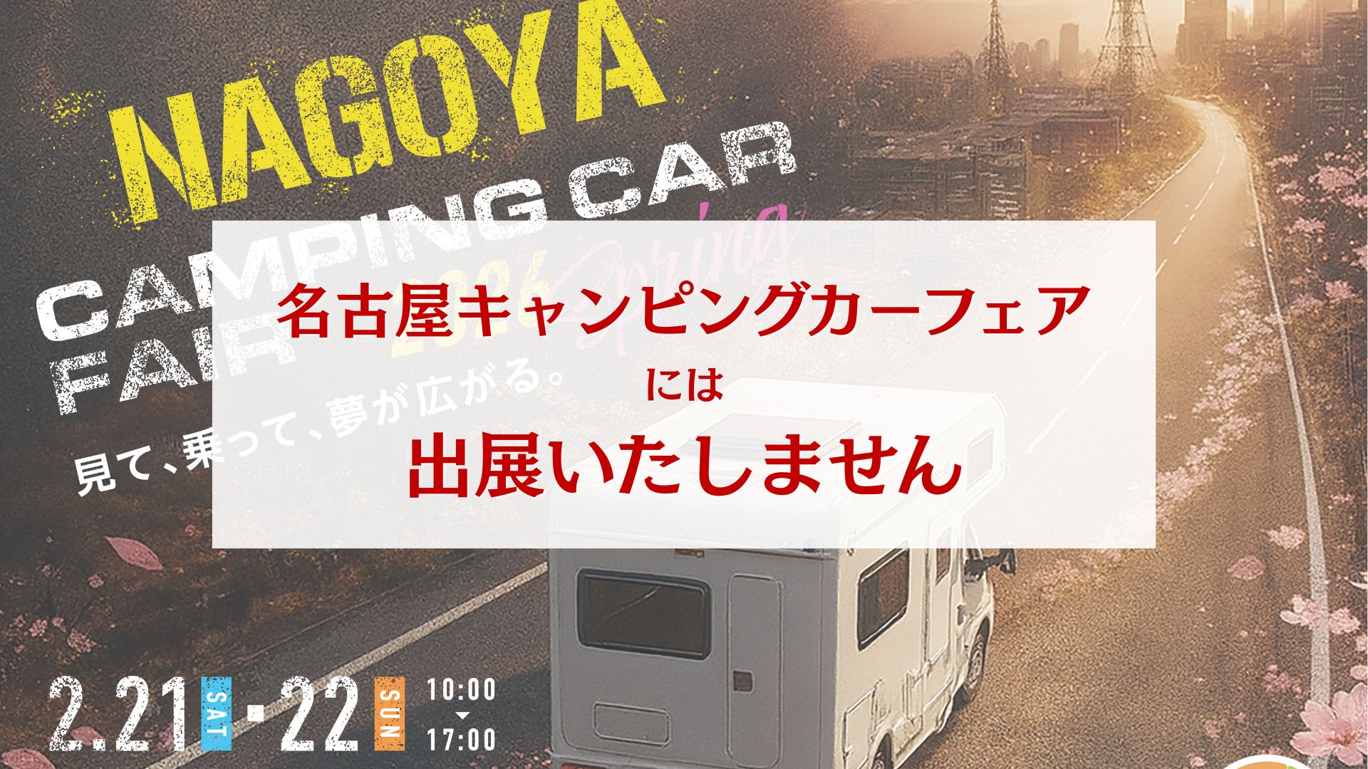 2月21日(土)・22日(日)の期間、Aichi Sky Expo(愛知県国際展示場)にて開催される「名古屋キャンピングカーフェア2026」について、トイファクトリーは出展いたしません。
