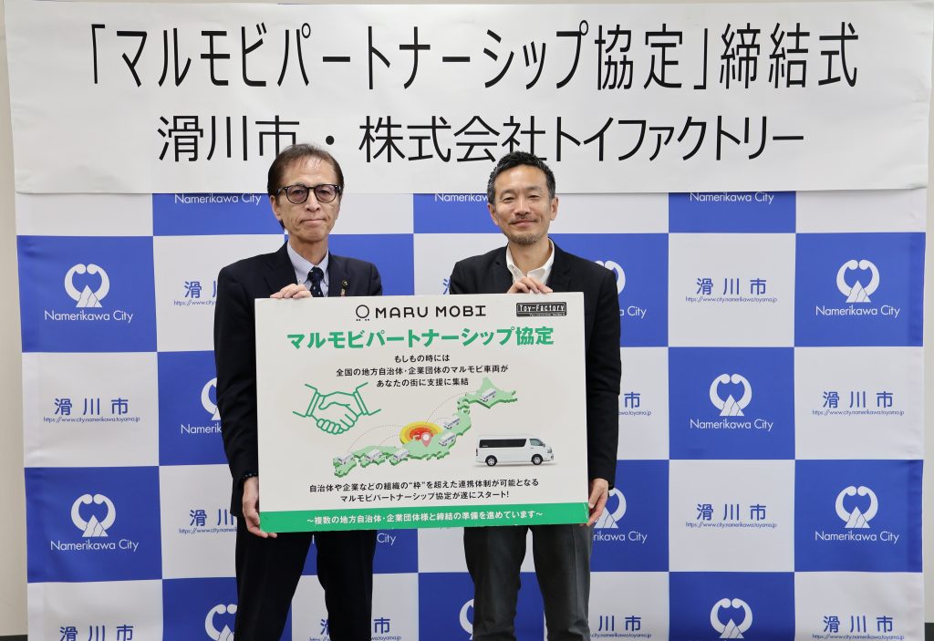 本導入は富山県内で初となるマルモビ導入事例であり、あわせてトイファクトリーとのパートナーシップ協定も締結。