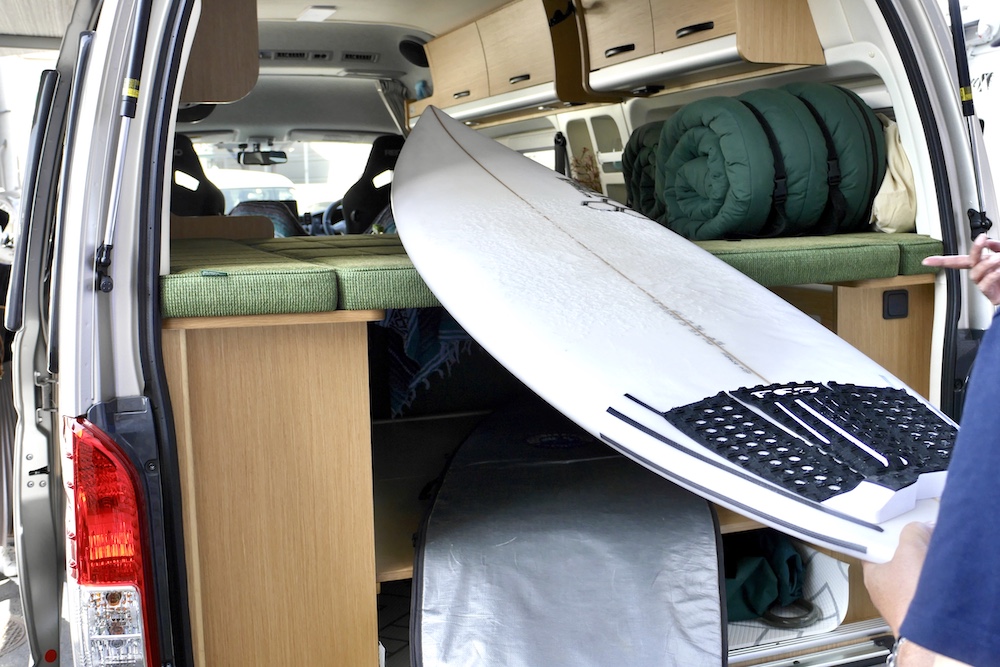 サーフィンが一番の趣味で、1年中波乗りに行けるよう、道具は常に準備万端です!