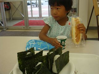 この旅初の車中泊は少し暑かった。後部の常設二段ベットの上に妻下に子供一人、セカンドとサードシートをフラットにし父ちゃんと子供2人が就寝。毎日子供はローテする。朝食は、SAでおにぎり・パン・豚汁など。