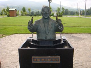 道の駅230ルスツ。なぜか浪越徳治郎像を見つけた。香川県出身だが開拓団として留寿都村に来たらしい。