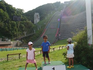 札幌の大倉山。数年前来たときは、工事中で見学不可だった。きれいに整備され駐車場からはエスカレーター完備。エスカレーターに乗れない長男は、行き帰りおんぶ。