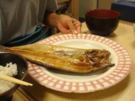 大きく肉厚。いつも食べるホッケとは大違い。やっぱり、エンゲル係数高?い。 |