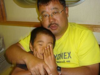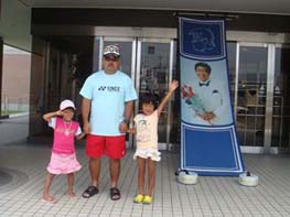 写真嫌いの子供たち。長男はサルのポーズ。長女は絶対に顔を見せない。見せても変な顔。唯一まともな次女。父ちゃんは、一応タオルを巻いているが、必要ない。すずし?い。デブには天国。