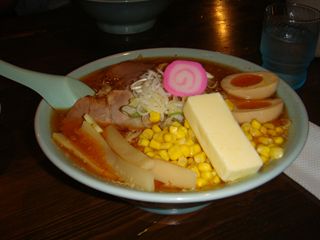 近くの湯の花温泉に入り晩飯に。小樽ラーメン問屋の北海バターコーンラーメン。みそ味、煮卵トッピング。1000円。カロリー高そ?う。